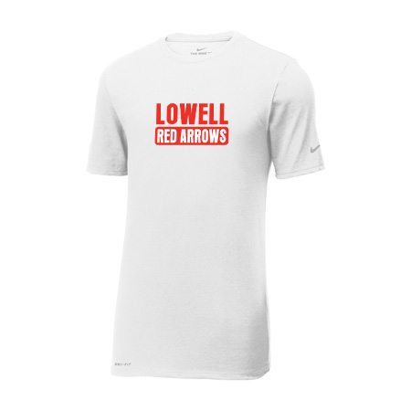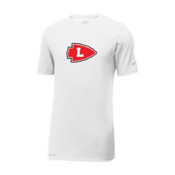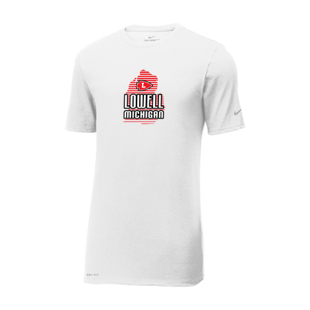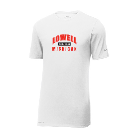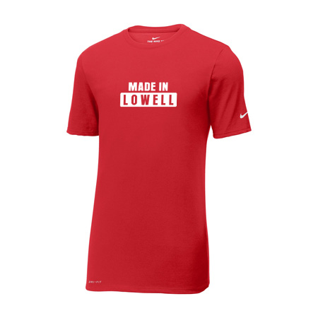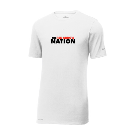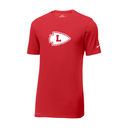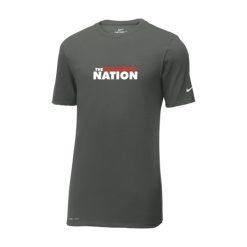 This Nike performance tee features sweat-wicking fabric to help keep you dry and comfortable. Durable rib knit crew neck. Heat transfer label for tag-free comfort. Double-needle stitching throughout. Contrast heat transfer Swoosh design trademark on left sleeve. Contrast heat transfer Dri-FIT logo at right hem. Made of 4.7-ounce, 60/40 cotton/poly Dri-FIT fabric.
