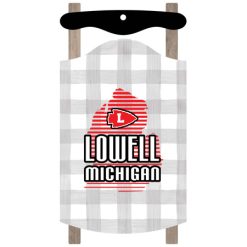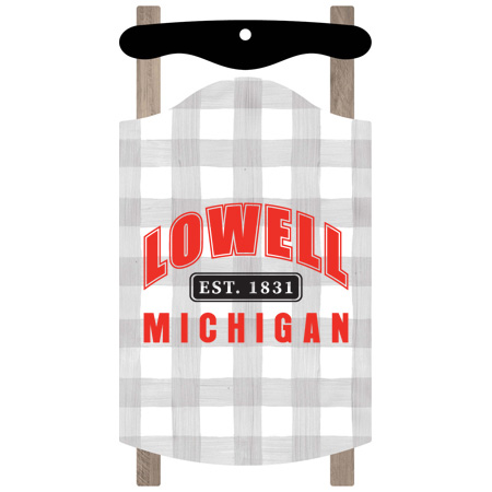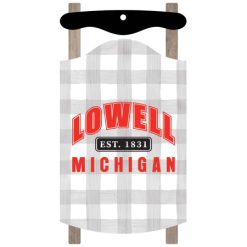 Decorate your Christmas tree with a red buffalo check, red and green plaid, faux wood, grey and white check or solid white sled ornament! This ornament is 5″ x 2.75″ and is made of pine material with a UV-LED printed finish.