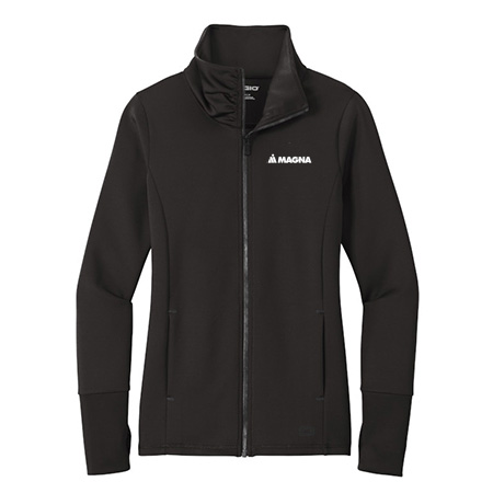 LAYERABLE WARMTH; STRETCH; STAY-COOL WICKING ;REFLECTIVE DETAILS ;7.4-ounce, 85/15 poly/spandex with stay-cool wicking technology; Reflective OGIO heat transfer label for tag-free comfort; Oversized zip-through cowl neck collar ;Front seaming for shaping; Black reflective O heat transfer on back right shoulder; Pleating on back; Metaluxe® zipper; Engraved matte black metal O zipper pull; Black reflective O heat transfer on left pocket