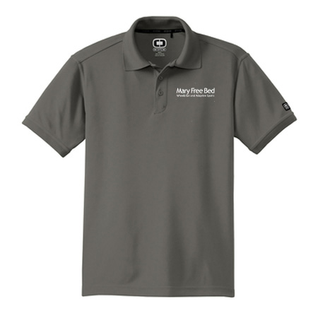 5-ounce, 100% poly pique with stay-cool wicking technology; Flat knit collar; 3-button placket with dyed-to-match buttons; Side vents