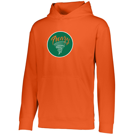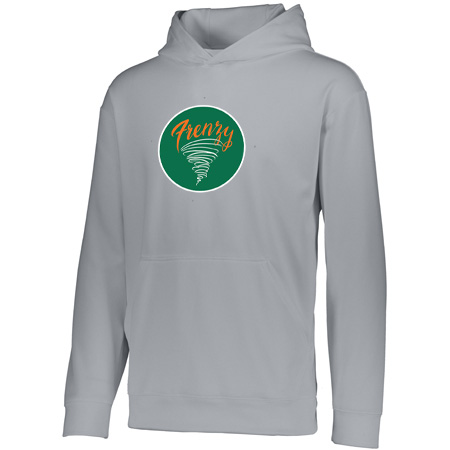 5.9 ounce 100% polyester performance wicking fleece; Wicks moisture; Tear away label; Self-lined hood with drawcord on Adult sizes only; Set-in sleeves; Front pouch pocket; Self-fabric cuffs and bottom band