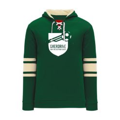 Polyfleece, rib knit fabrics. Features skate lace neck hood.