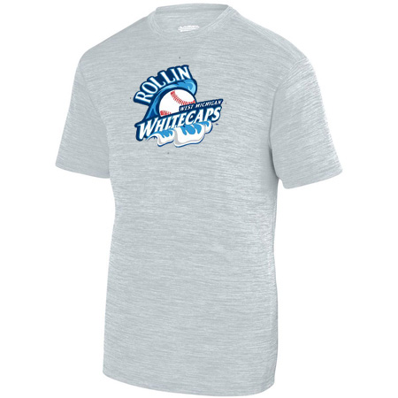 100% polyester heathered wicking knit; Wicks moisture; Tagless label; Crew neck; Set-in sleeves