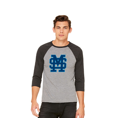 3.6 oz., 52% Airlume combed and ring-spun cotton / 48% polyester, 40 single; 3.6 oz., 90% Airlume combed and ring-spun cotton / 10% polyester (Black Heather); 3.8 oz., 50% polyester / 25% Airlume combed and ring-spun cotton / 25% rayon, 40 single (Triblend Colors); 4.0 oz., 91% polyester / 9% Airlume combed and ring-spun cotton, 32 single (Marble Colors); Pre-shrunk; Side-seamed; Retail fit; Unisex sizing; Contrast raglan sleeves and neck trim