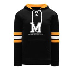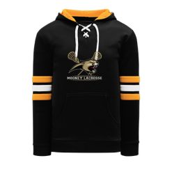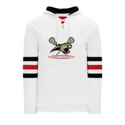 Polyfleece, rib knit fabrics. Features skate lace neck hood.