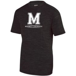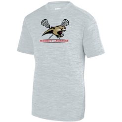 100% polyester heathered wicking knit; Wicks moisture; Tagless label; Crew neck; Set-in sleeves