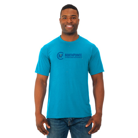 5.3 oz., 100% polyester pre-shrunk jersey; Moisture wicking with odor control; Ideal for sublimation printing; Tear-away label; 1 x 1 rib collar with two-needle coverstitching on front neck; Shoulder-to-shoulder taping; Two-needle hemmed sleeves and bottom; Quarter-turned to eliminate center crease