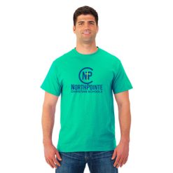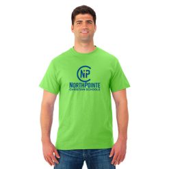 5.4 oz., 50% cotton / 50% polyester pre-shrunk jersey