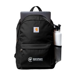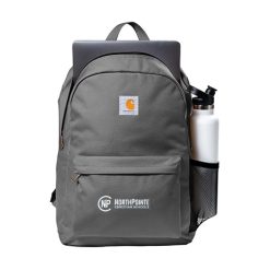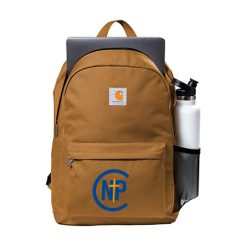 This no-nonsense pack is built for everyday hauling. Made of canvas with a water-shedding coating, it can easily handle any work or school commute. ; 500D polyester; Rain Defender® durable water repellent (DWR); Large main compartment with elastic pocket; Front zippered pocket with 2 mesh pockets and key fob; Mesh side pocket; Padded shoulder straps for comfort; Carhartt label sewn on front; Dimensions: 17.5″h x 12″w x 6″l; Note: Bags not intended for use by children 12 and under.