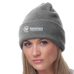 100% acrylic knit cuff cap; Approx. 12 1/2″ long; Made in the USA; Front imprint area: 3″H x 4″W