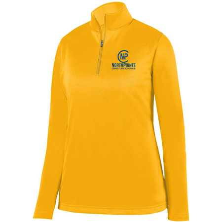 100% polyester performance wicking fleece ™ Wicks moisture away from the body ™ Ladies fit ™ Tear away label ™ Quarter zip pullover style ™ Set-in sleeves ™ Open bottom