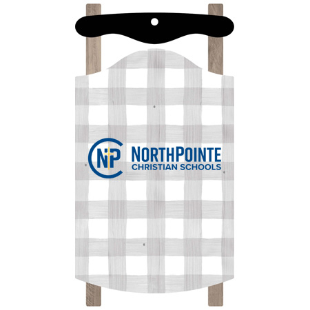 Decorate your Christmas tree with a red buffalo check, red and green plaid, faux wood, grey and white check or solid white sled ornament! This ornament is 5″ x 2.75″ and is made of pine material with a UV-LED printed finish.