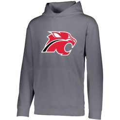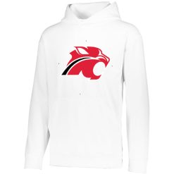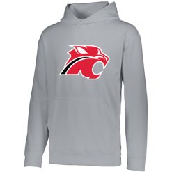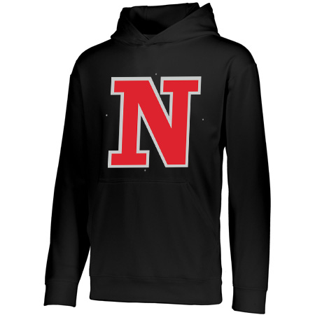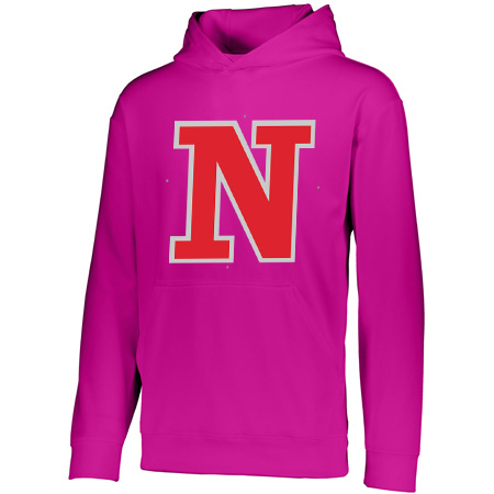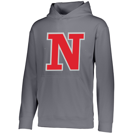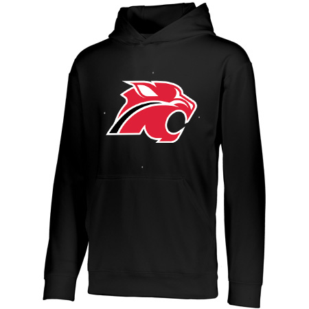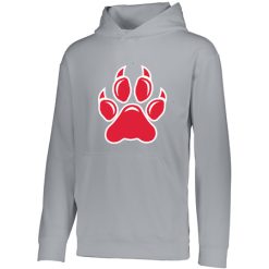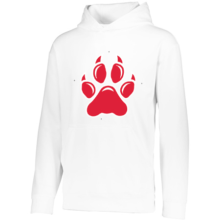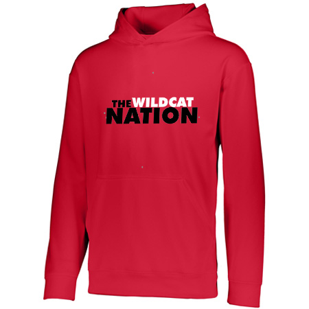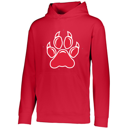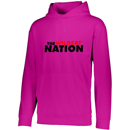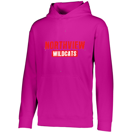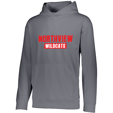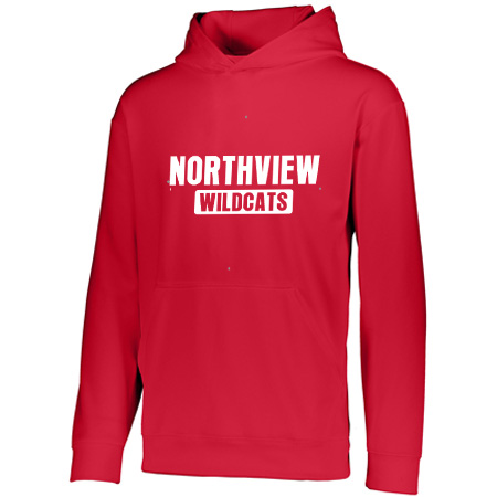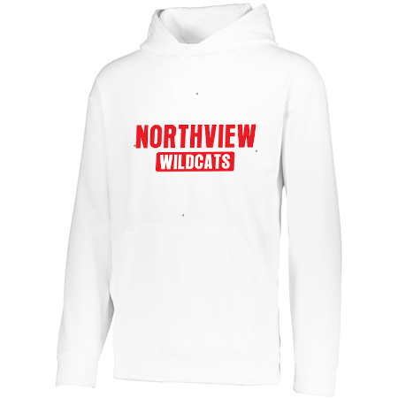 5.9 ounce 100% polyester performance wicking fleece; Wicks moisture; Tear away label; Self-lined hood with drawcord on Adult sizes only; Set-in sleeves; Front pouch pocket; Self-fabric cuffs and bottom band