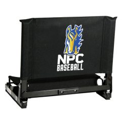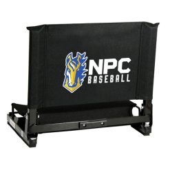 The GameChanger™ fits virtually any metal or wooden bleacher. Bottom hook secures to bleacher; rubber non-slip skids. Folds neatly; attached tote handle for easy carry.