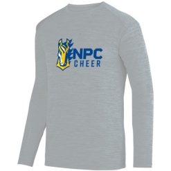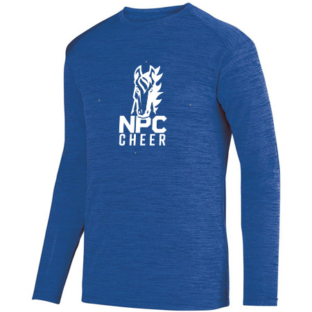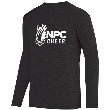 100% polyester heathered wicking knit; Wicks Moisture; Tagless label; Set-in sleeves