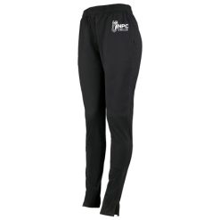 Heavyweight 100% polyester matte brushed tricot; Ladies’ fit; Woven label; Covered elastic waistband with inside drawcord; Side seam pockets; Tapered fit; Back yoke; Zipper on outside lower leg