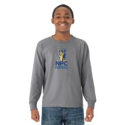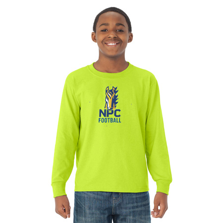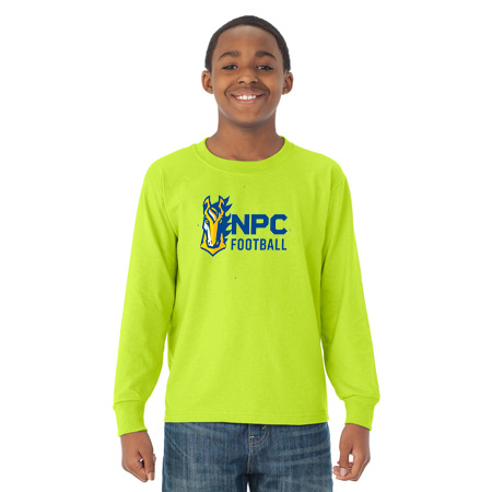 5.4 oz., 50% cotton / 50% polyester pre-shrunk jersey; 5.4 oz., 47% cotton / 53% polyester (Oxford); Made with USA grown cotton; Moisture wicking; Tear-away label; 1 x 1 rib collar with two-needle coverstitching on front neck; Shoulder-to-shoulder taping; 1 x 1 rib cuffs; Two-needle hemmed bottom; Quarter-turned to eliminate center crease; CPSIA compliant: all JERZEES® youth products and packaging comply with the tracking label requirements of the Consumer Product Safety Improvement Act