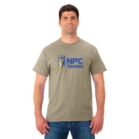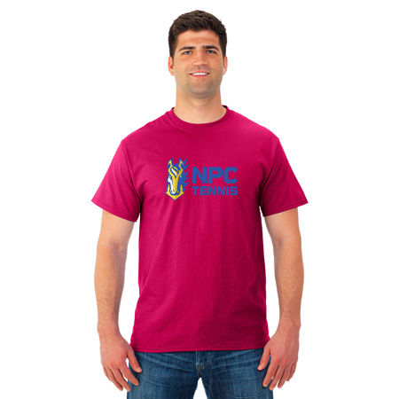 5.4 oz., 50% cotton / 50% polyester pre-shrunk jersey