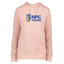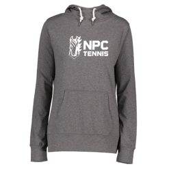 5.6 oz., 55% cotton / 45% polyester, heathered jersey, Funnel neck with hood and corded drawstring, Relaxed silhouette