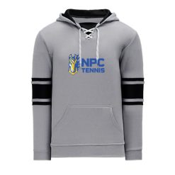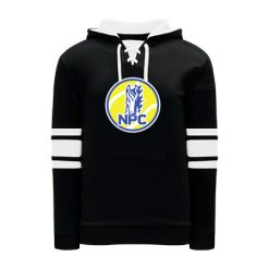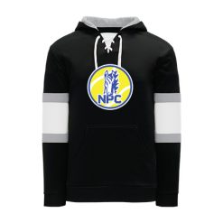Polyfleece, rib knit fabrics. Features skate lace neck hood.