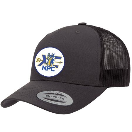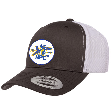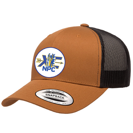 65% polyester / 35% cotton, Hard buckram. Structured, Mid profile, 6 panel, Curved visor, 3 ½” crown