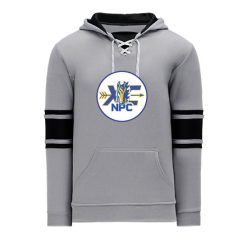 Polyfleece, rib knit fabrics. Features skate lace neck hood.