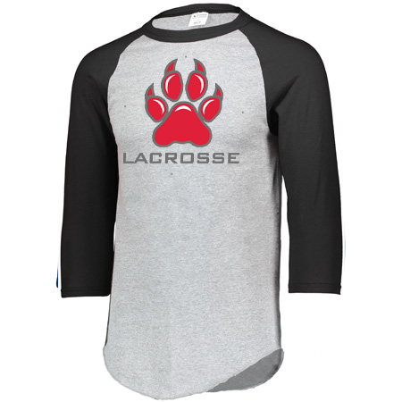 4.8 ounce 50% polyester/50% cotton jersey knit; Tear away label; Crew neck; 3/4″ length raglan sleeves; Serged fishtail bottom