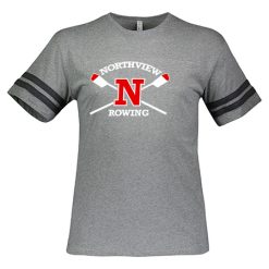 4.5 oz., 100% combed ringspun cotton fine jersey; 4.5 oz., 60% combed ringspun cotton / 40% polyester (CVC Colors); Ribbed collar; Shoulder-to-shoulder self-fabric back neck tape; Coverstitch front and back yoke; Contrast topstitched self-fabric stripes on sleeves; Side seam construction; EasyTear™ label; Fit: Adult Unisex – True to Size