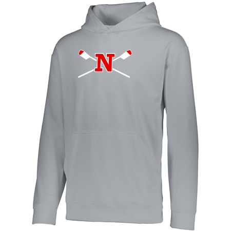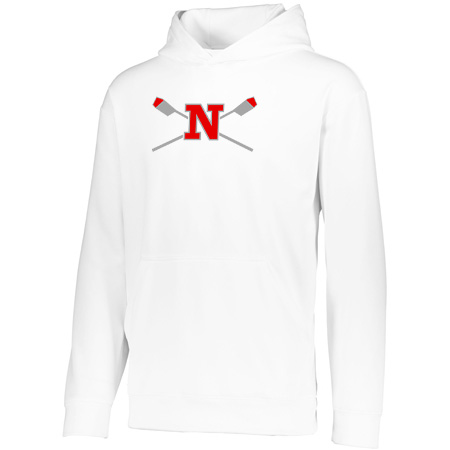5.9 ounce 100% polyester performance wicking fleece; Wicks moisture; Tear away label; Self-lined hood with drawcord on Adult sizes only; Set-in sleeves; Front pouch pocket; Self-fabric cuffs and bottom band