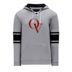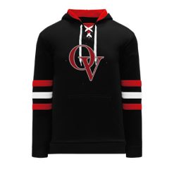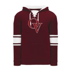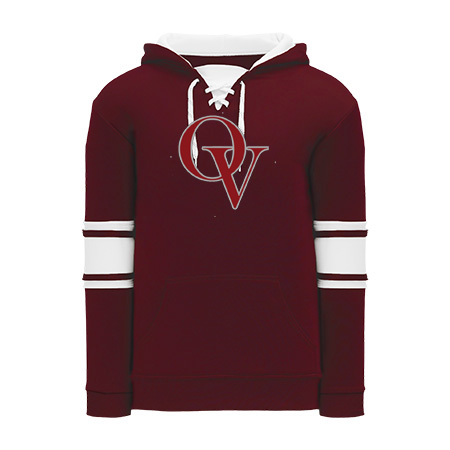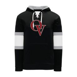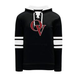 Polyfleece, rib knit fabrics. Features skate lace neck hood.