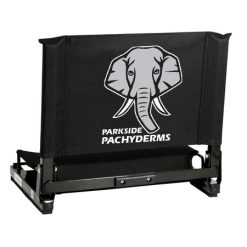 The GameChangerâ„¢ fits virtually any metal or wooden bleacher. Bottom hook secures to bleacher; rubber non-slip skids. Folds neatly; attached tote handle for easy carry.