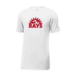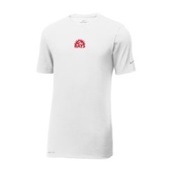 This Nike performance tee features sweat-wicking fabric to help keep you dry and comfortable. Durable rib knit crew neck. Heat transfer label for tag-free comfort. Double-needle stitching throughout. Contrast heat transfer Swoosh design trademark on left sleeve. Contrast heat transfer Dri-FIT logo at right hem. Made of 4.7-ounce 65/35 cotton/poly Dri-FIT fabric.