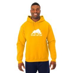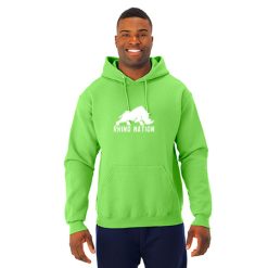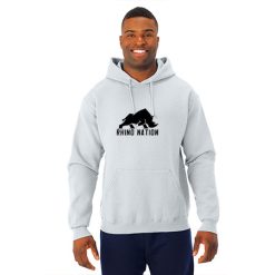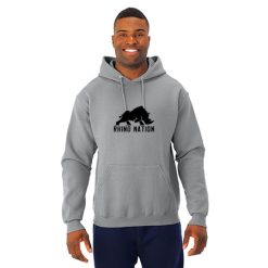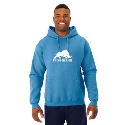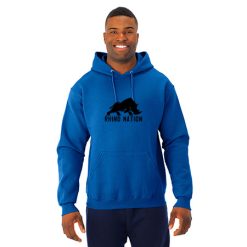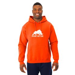 8.0 oz., 50% cotton / 50% polyester NuBlend® pre-shrunk fleece ;8.0 oz., 49% cotton / 51% polyester (Oxford); Made with USA grown cotton; NuBlend® pill-resistant fleece; High stitch density for a smooth printing canvas; Tear away label; 2-ply hood with grommets; Matching tipped and knotted drawcord; Front pouch pocket; Two-needle coverstitching on neck, armholes and waistband; 1 x 1 rib cuffs and waistband; Quarter-turned to eliminate center crease
