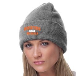 100% acrylic knit cuff cap; Approx. 12 1/2″ long; Made in the USA; Front imprint area: 3″H x 4″W
