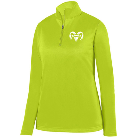 100% polyester performance wicking fleece ™ Wicks moisture away from the body ™ Ladies fit ™ Tear away label ™ Quarter zip pullover style ™ Set-in sleeves ™ Open bottom