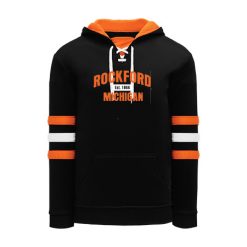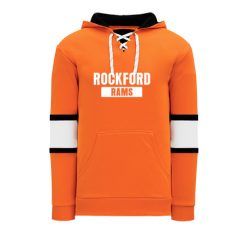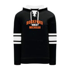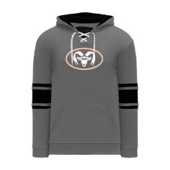 Polyfleece, rib knit fabrics. Features skate lace neck hood.