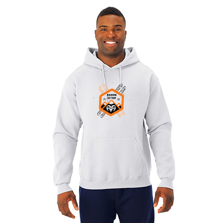 8.0 oz., 50% cotton / 50% polyester NuBlend® pre-shrunk fleece ;8.0 oz., 49% cotton / 51% polyester (Oxford); Made with USA grown cotton; NuBlend® pill-resistant fleece; High stitch density for a smooth printing canvas; Tear away label; 2-ply hood with grommets; Matching tipped and knotted drawcord; Front pouch pocket; Two-needle coverstitching on neck, armholes and waistband; 1 x 1 rib cuffs and waistband; Quarter-turned to eliminate center crease