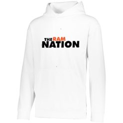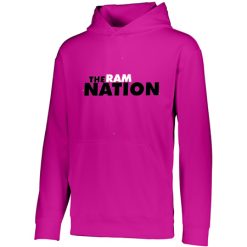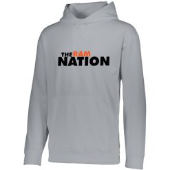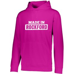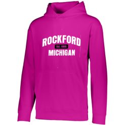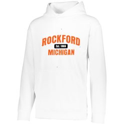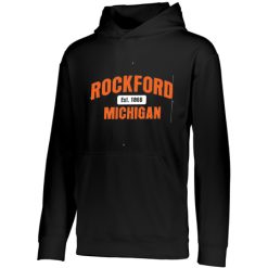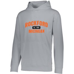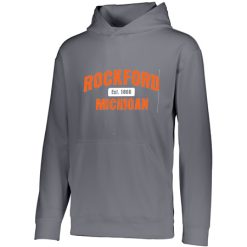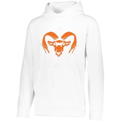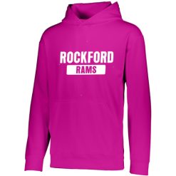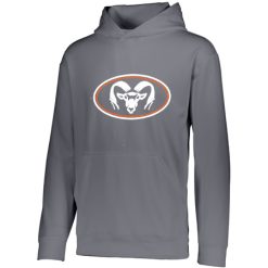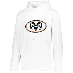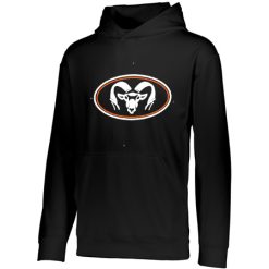 5.9 ounce 100% polyester performance wicking fleece; Wicks moisture; Tear away label; Self-lined hood with drawcord on Adult sizes only; Set-in sleeves; Front pouch pocket; Self-fabric cuffs and bottom band