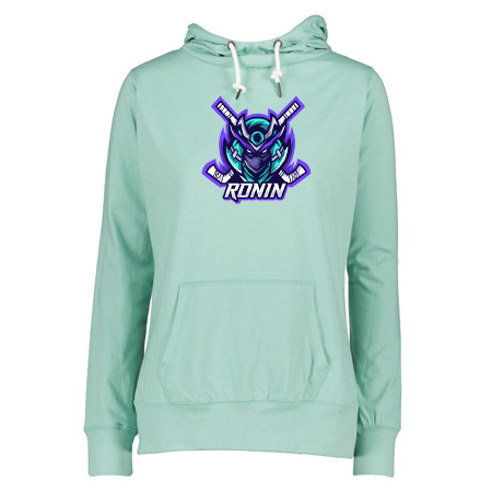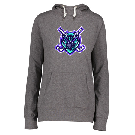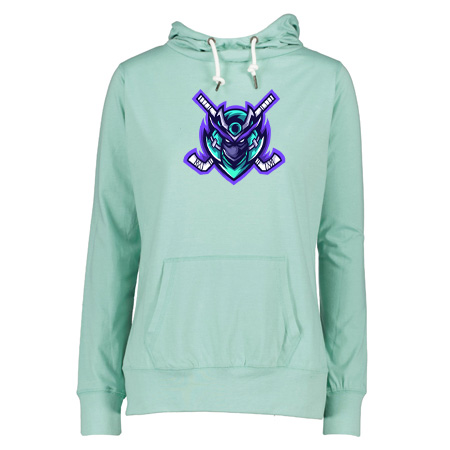 5.6 oz., 55% cotton / 45% polyester, heathered jersey, Funnel neck with hood and corded drawstring, Relaxed silhouette