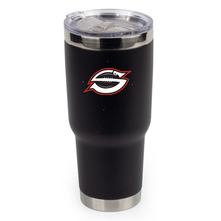 The BOSS 32 oz. Black tumbler is a crowd pleaser for concerts, sporting events, or even around the house activities. Its Double Wall Vacuum Insulation keeps beverages hot for up to six hours and cold items chilled for up to twenty-four hours. The BOSS tumbler includes an Acrylic push in top with sliding closure for easy use and additional insulation. Has an extra wide mouth or easy filing and pouring and a slim design to fit in most cup holders. Available in black and sivler. Does not include BPA, phthalates, lead or other toxins. Recommended to hand wash only.
