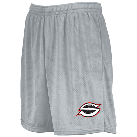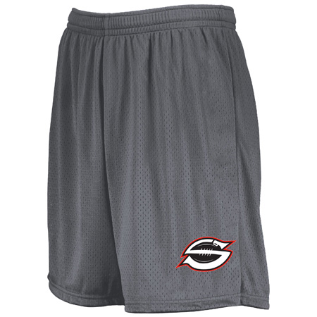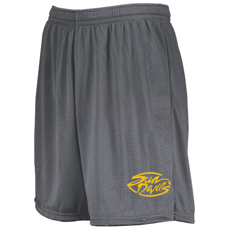 Designed for the court or the gym, the inseam graded Youth Modified Mesh Shorts from Augusta Sportswear are an easy favorite. Featuring a covered elastic waistband with inside drawcord, these shorts were made for versatility. 100% polyester sports mesh with color secure® technology that helps prevent dye migration; 100% polyester wicking knit lining with color secure® technology that helps prevent dye migration; Wicks moisture; Tagless label; Covered elastic waistband with inside drawcord; Youth inseam graded