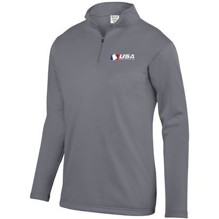 Wicks moisture; Tear away label; Quarter zip pullover style; Set-in sleeves; Open bottom
