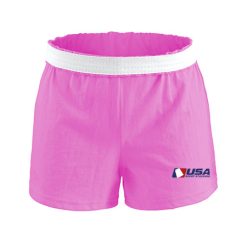 7.0 oz., 50% cotton / 50% polyester jersey; V-notch legs with 3″ inseam; 1 1/4″ exposed elastic waistband; Regular rise; Girl fit