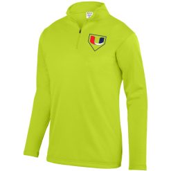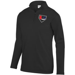 Wicks moisture; Tear away label; Quarter zip pullover style; Set-in sleeves; Open bottom