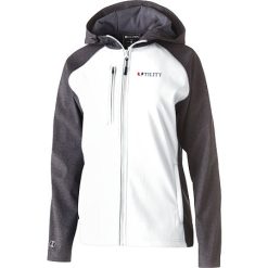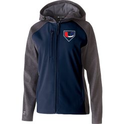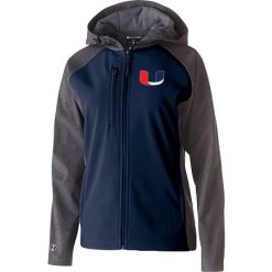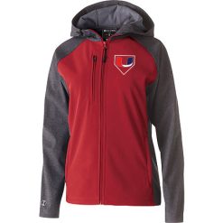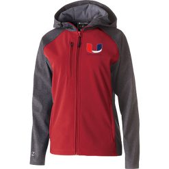 Lightweight, soft shell outer fabric in 96% polyester, 4% spandex bonded to brushed back polyester; Sleeves, hood and panels have Tech Print pattern detail; Ladies’ fit; Woven label; Front zipper; Adjustable hood with drawcord on Ladies’ S-2XL only; Dual front chest zippered pocket; Dual inside pockets; Internal storm cuffs for weather protection; Front zippered pockets; Open bottom with adjustable elastic hidden drawcord; Dropped tail