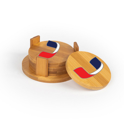 Utility Round Bamboo Coaster Set of 4 with holder