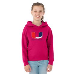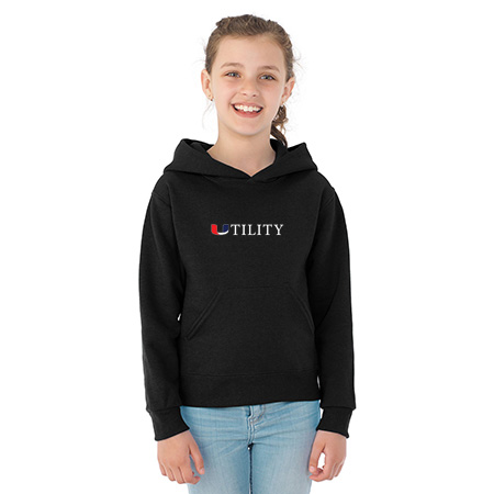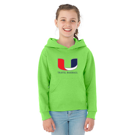 8.0 oz., 50% cotton / 50% polyester NuBlend® pre-shrunk fleece; 8.0 oz., 49% cotton / 51% polyester (Oxford); Made with USA grown cotton; NuBlend® pill-resistant fleece; High stitch density for a smooth printing canvas; Tear away label ;2-ply hood ;Front pouch pocket ;Two-needle coverstitching on neck, armholes and waistband; 1 x 1 rib cuffs and waistband; Quarter-turned to eliminate center crease; CPSIA compliant: all JERZEES® youth products and packaging comply with the tracking label requirements of the Consumer Product Safety Improvement Act