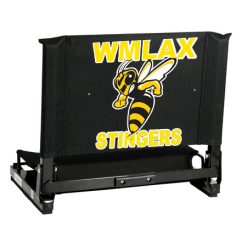 The GameChanger™ fits virtually any metal or wooden bleacher. Bottom hook secures to bleacher; rubber non-slip skids. Folds neatly; attached tote handle for easy carry.