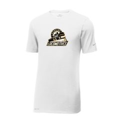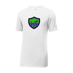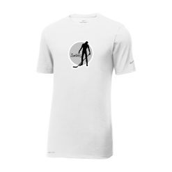 This Nike performance tee features sweat-wicking fabric to help keep you dry and comfortable. Durable rib knit crew neck. Heat transfer label for tag-free comfort. Double-needle stitching throughout. Contrast heat transfer Swoosh design trademark on left sleeve. Contrast heat transfer Dri-FIT logo at right hem. Made of 4.7-ounce, 60/40 cotton/poly Dri-FIT fabric.