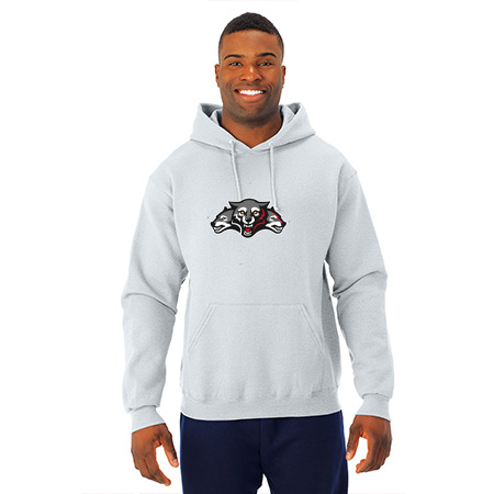 8.0 oz., 50% cotton / 50% polyester NuBlend® pre-shrunk fleece ;8.0 oz., 49% cotton / 51% polyester (Oxford); Made with USA grown cotton; NuBlend® pill-resistant fleece; High stitch density for a smooth printing canvas; Tear away label; 2-ply hood with grommets; Matching tipped and knotted drawcord; Front pouch pocket; Two-needle coverstitching on neck, armholes and waistband; 1 x 1 rib cuffs and waistband; Quarter-turned to eliminate center crease